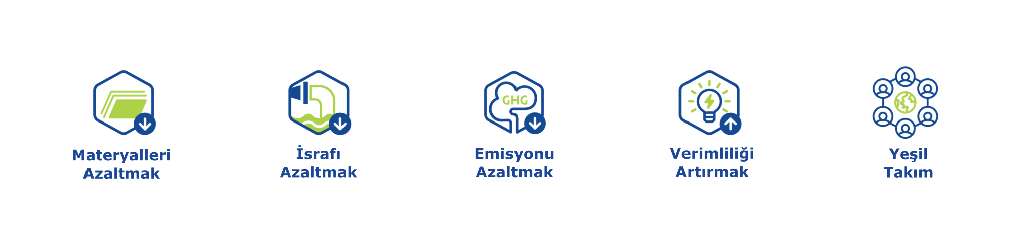 İşimizle ve ekipmanlarımızla, üretimden operasyona kadar malzemeleri, atıkları ve emisyonları azaltmayı taahhüt ediyoruz